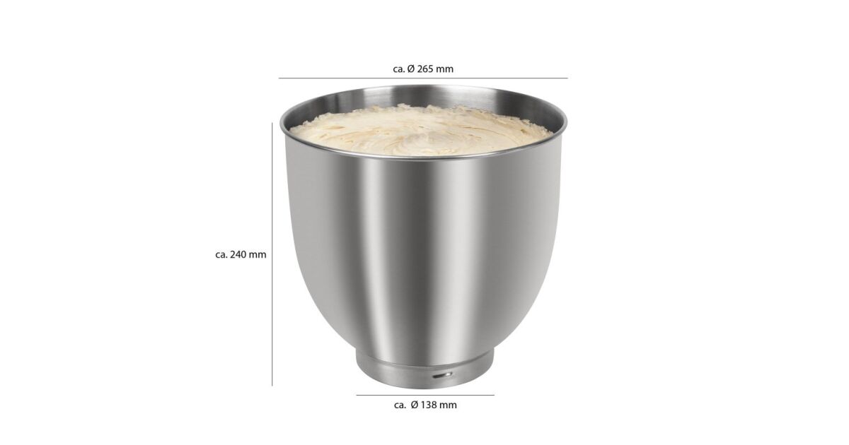 - 🥣 10-литрова купа от неръждаема стомана: Подходяща за приготвяне на макс. 6-6,5 кг тесто.