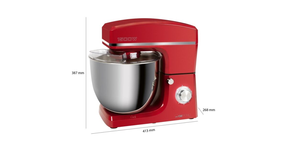 -Миксер с купа Clatronic XXL, капацитет 10 литра, макс. 6,5 кг тесто, идеално за теста и кремове, включва бъркалка, шпатула и кука, защита против...