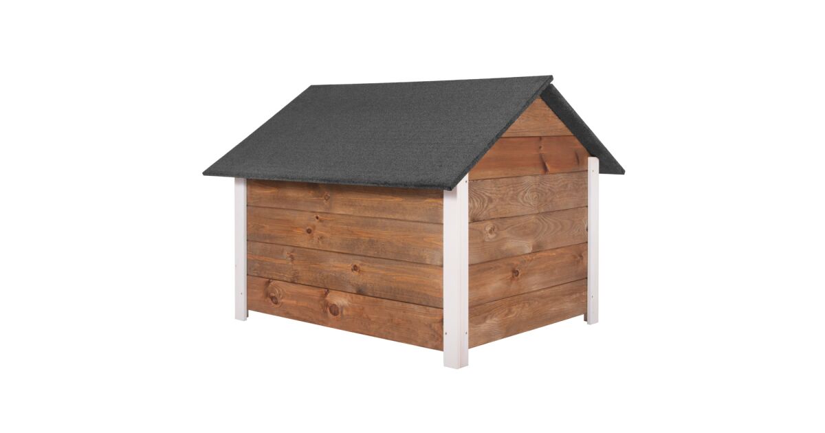 Тази здрава, устойчива на атмосферни влияния дървена кучешка къща е идеалният дом за вашето по-голямо куче. Изолираният дизайн запазва топлината на вашия домашен любимец през зимата и прохладата през лятото. Модерният външен вид и качествените материали гарантират издръжливост и комфорт.