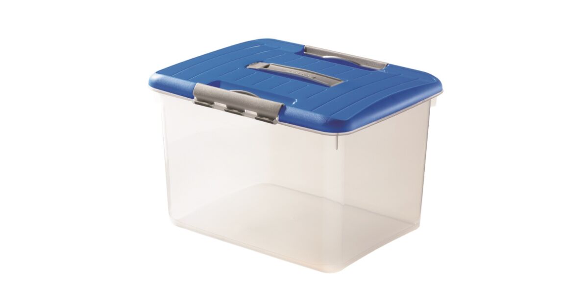 Кутия с капак и дръжка Hobby Optima 30L 42.8x34x28.1см прозрачна/синя описание на...