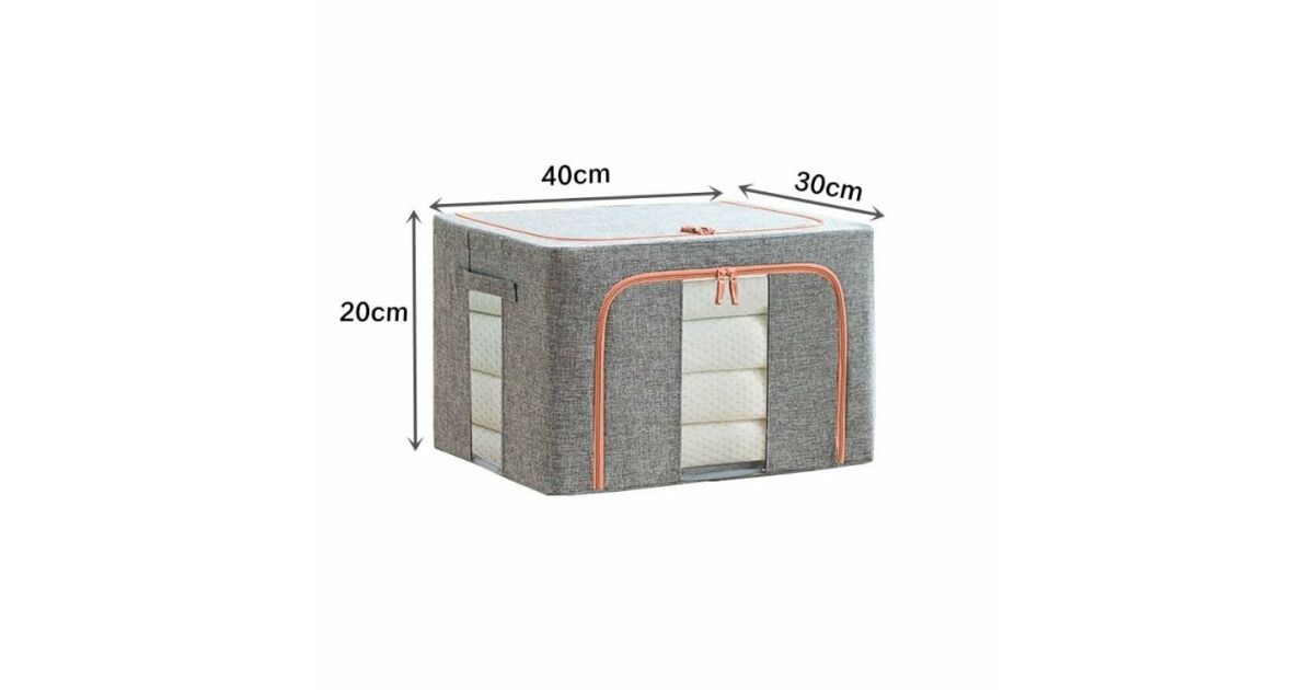 -Сгъваема кутия за съхранение, KeepHome, 24 л, памук и лен, 40x30x20 см, 2 прозореца, отпред и отстрани, 2 врати за достъп с двупосочен цип, метална... описание на...