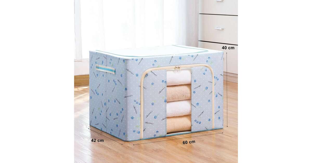 Сгъваема кутия за съхранение, KipHome, 100 л, плат Оксфорд, 60x42x40 см, преден прозорец, 2 врати за достъп с двупосочен цип, метална рамка, стабилна...