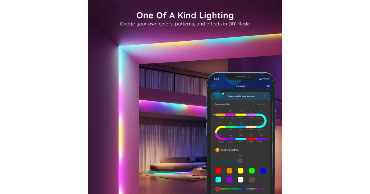 - RGBIC технология: предлага възможност за създаване на милиони цветове и уникални светлинни ефекти, със сегментиран контрол на цветовете.
