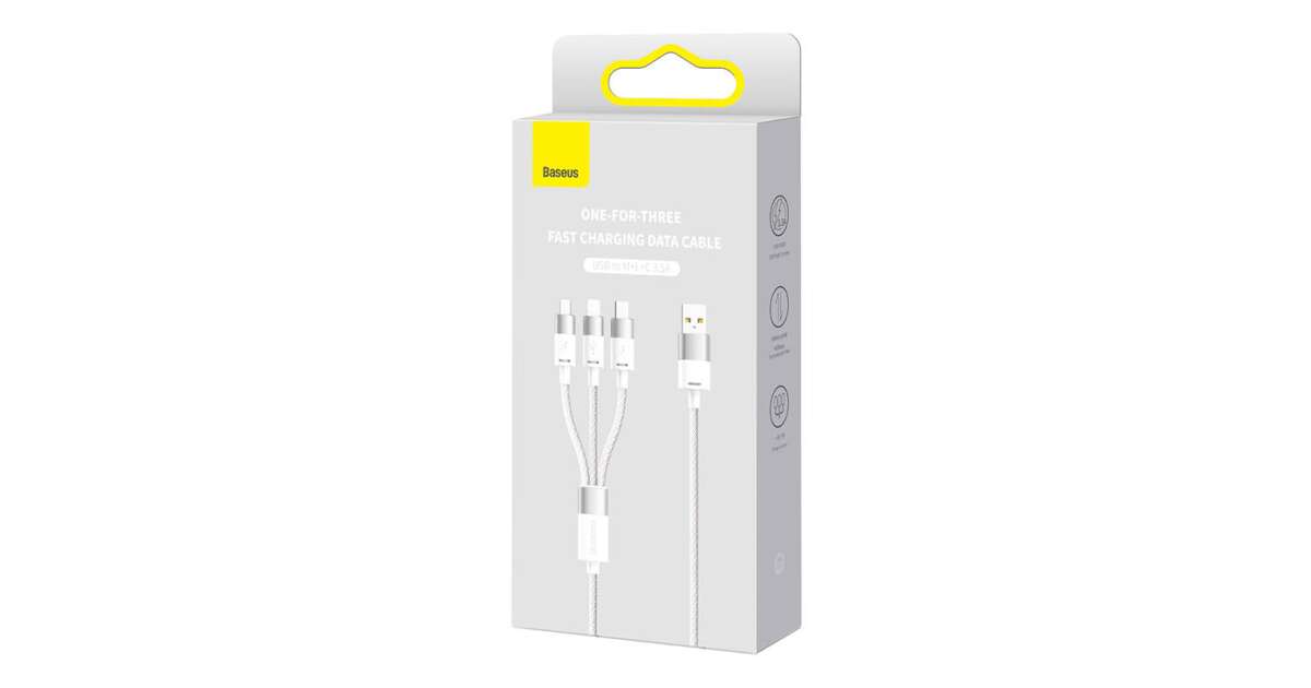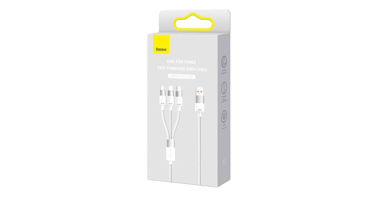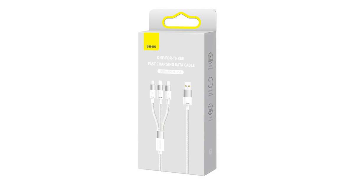 Baseus StarSpeed кабел за зареждане 3 в 1 USB - USB-C + Micro + Lightning 3,5A, 1,2 м, бял (CAXS000002)