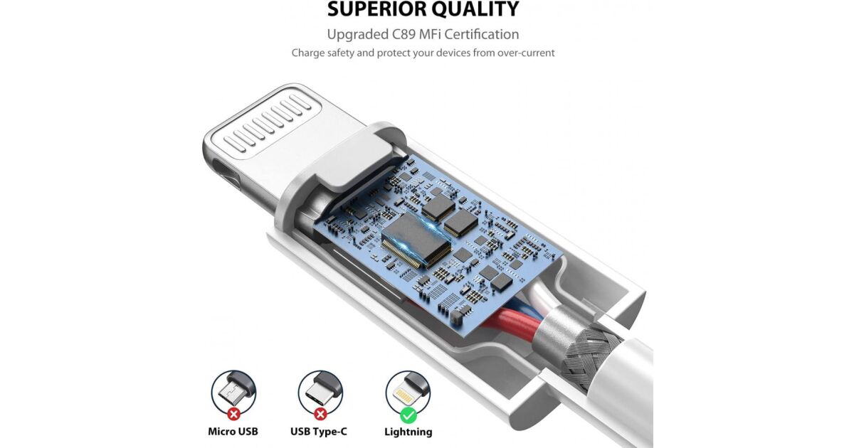 Кабел за бързо зареждане Syncwire, съвместим с iPhone 12 PRO Max 11 PRO Max SE XS Max XR X 8 7 6 Plus, iPad и други, 2 м