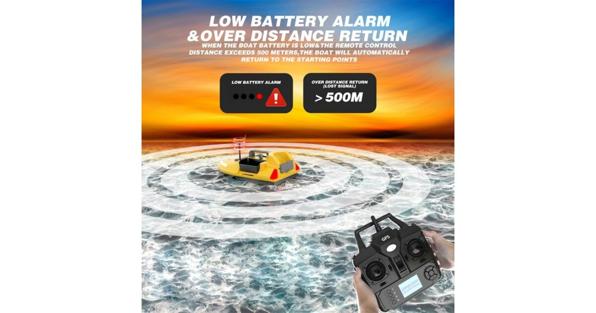 - Автоматично връщане: Когато батерията е изтощена или има загуба на сигнал, лодката автоматично се връща в началната точка. 🔄