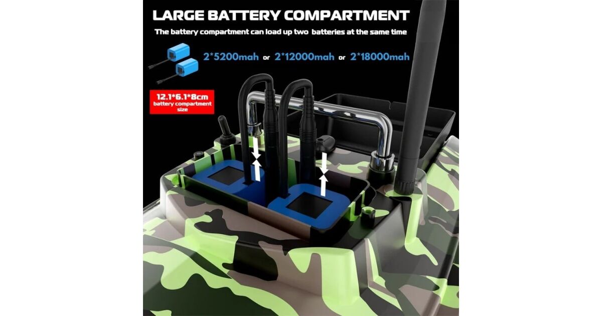 Лодка за риболовна стръв iUni V050, 500m, капацитет 2 кг, 12000mAh, 10km/h, 2.4GHz дистанционно управление, Камуфлажно зелено описание на...