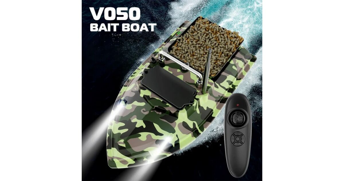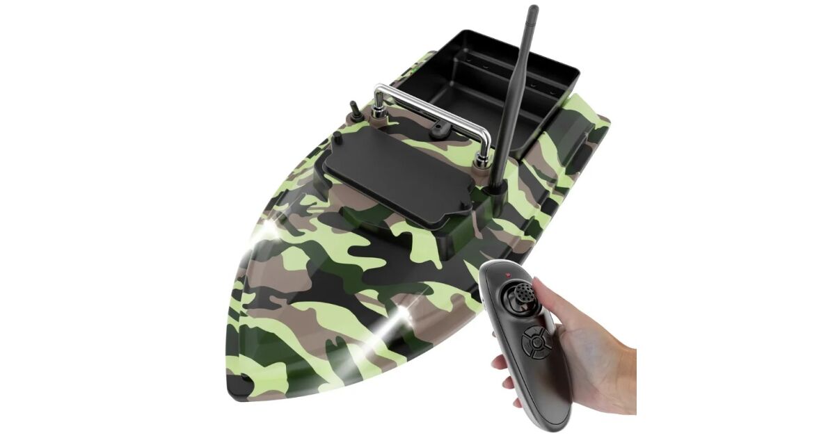 Лодка за риболовна стръв iUni V050, 500m, капацитет 2 кг, 5200mAh, 10km/h, 2.4GHz дистанционно управление, Камуфлажно зелено описание на...
