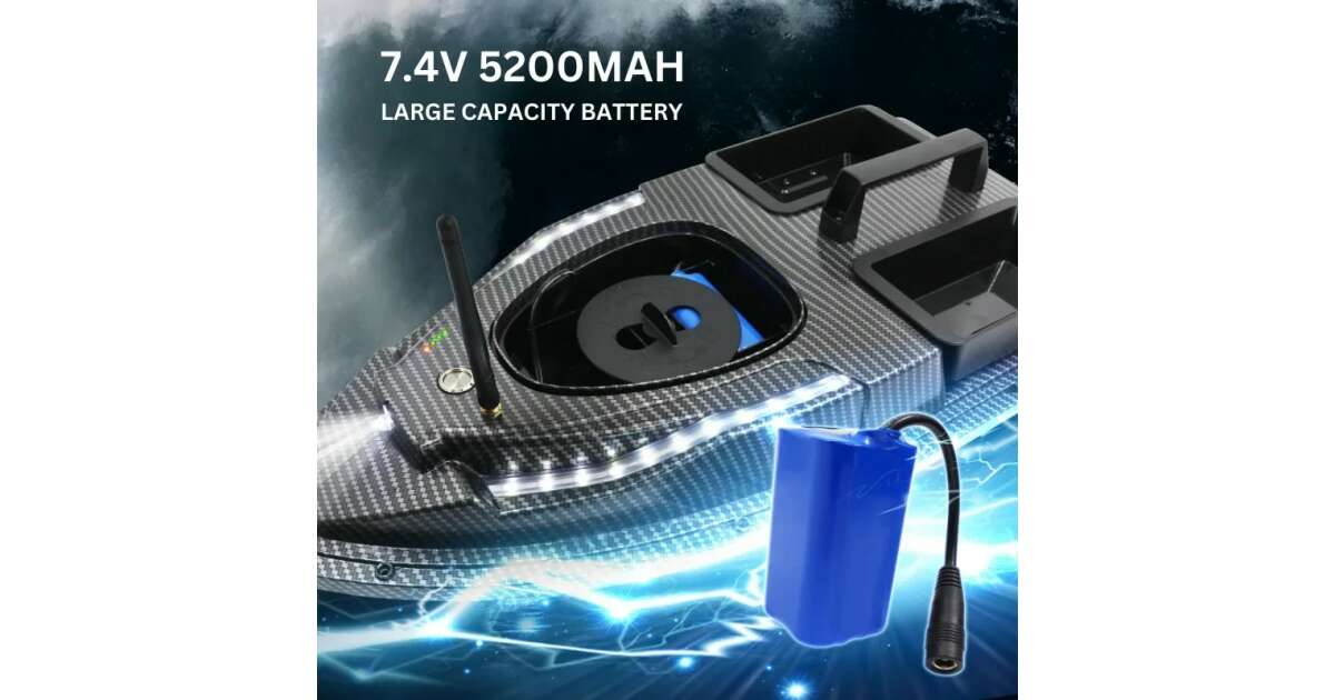Лодка за риболовна стръв iUni V900, GPS, 2 резервоара, капацитет 1.5кг, 500m, 5200mAh, 6km/h, 2.4GHz дистанционно управление описание на...