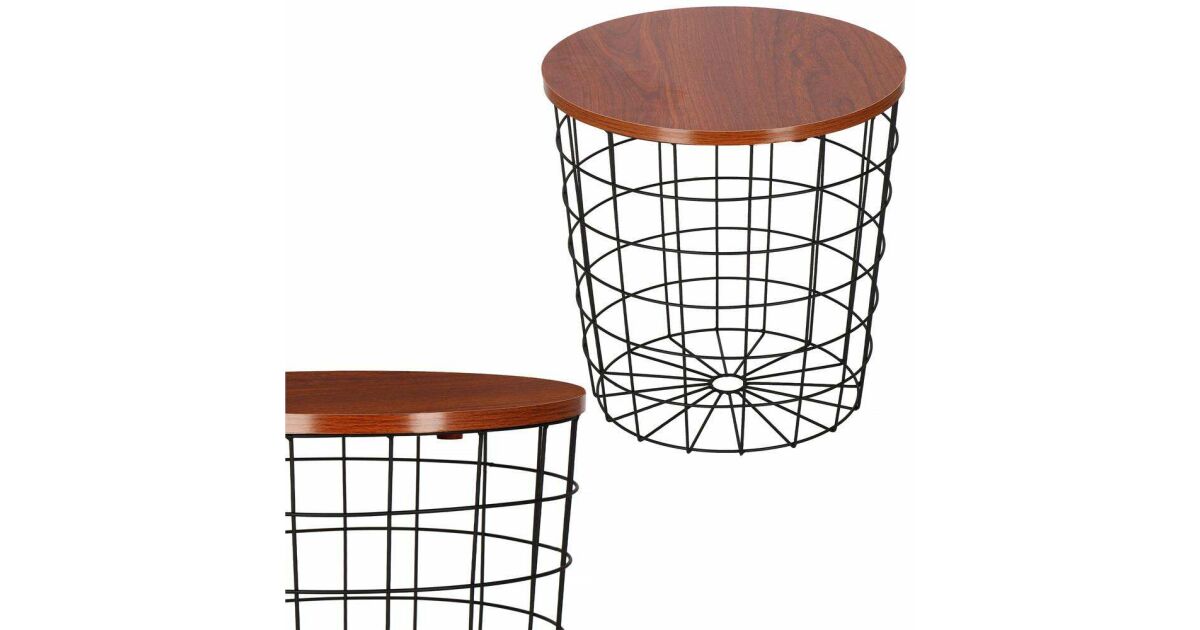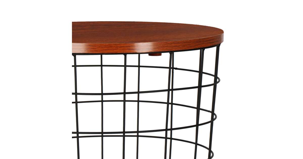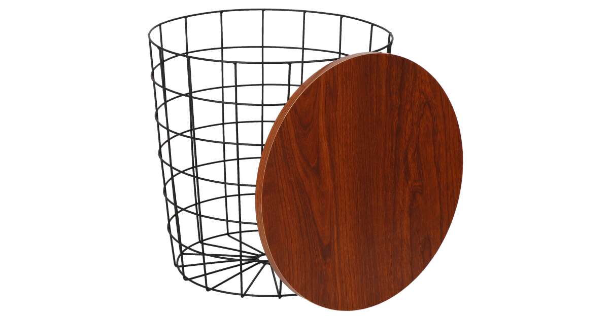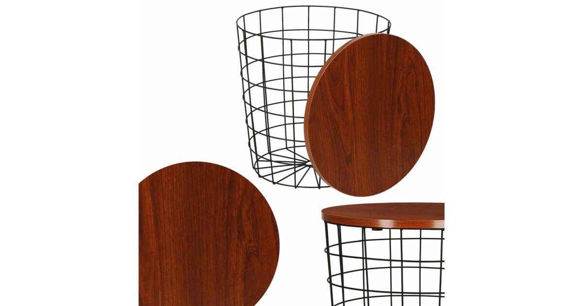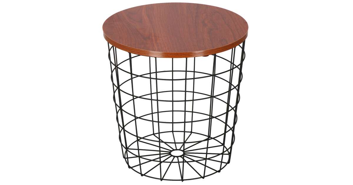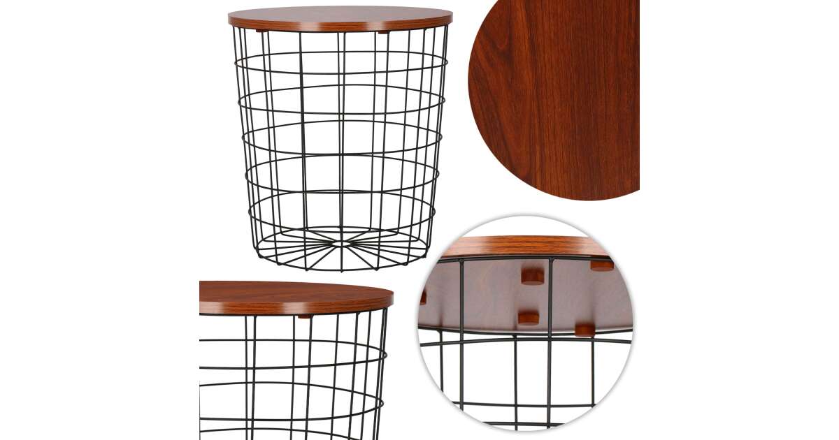 Кръгла маса с кошница за съхранение, MDF, метална основа, черно и кафяво, 30,5/39x40 cm, Springos описание на...