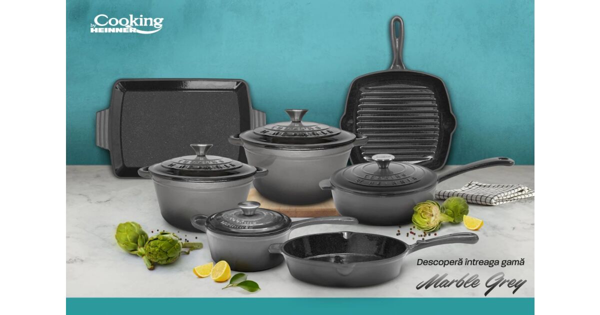 Емайлиран чугунен дълбок тиган + капак 24 X 8 см, 2,5 л, мраморно сив, готвене от Heinner HR-ZVC-TA24 покупка: