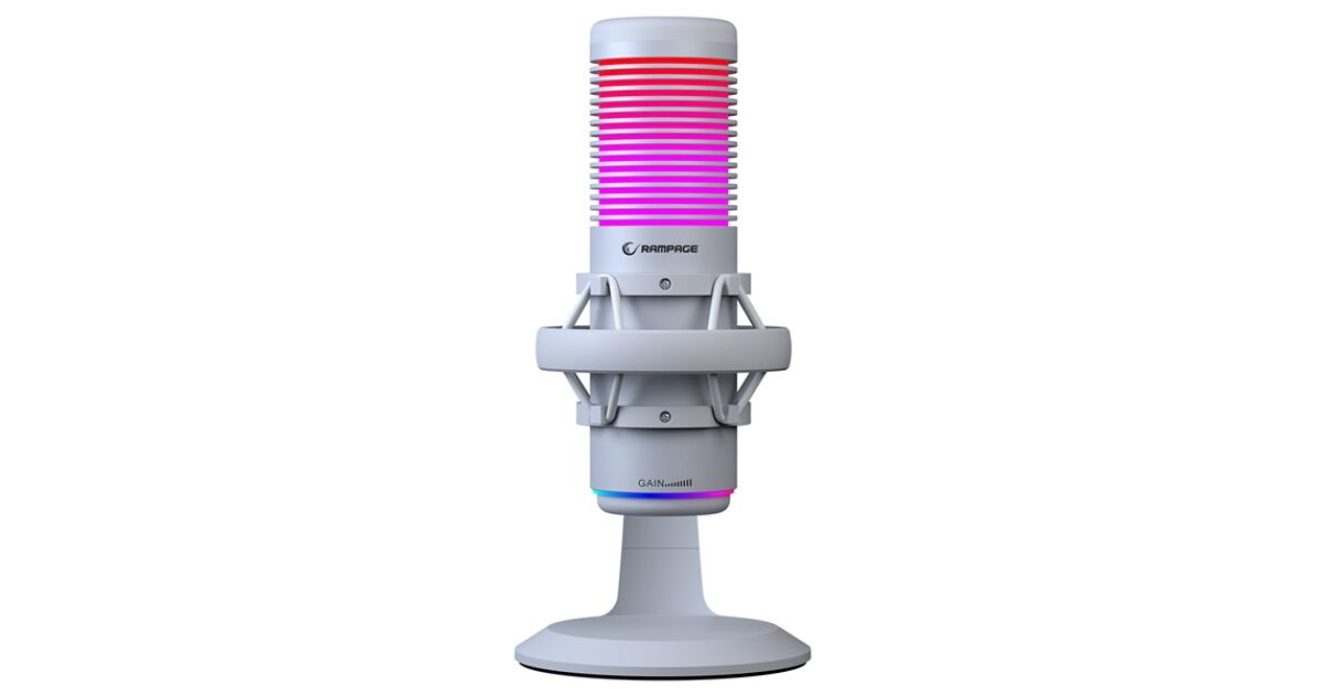Микрофон Rampage - BEMOL (USB, PC/MAC/Android, шумоподтискане, стойка, бял, 2 м кабел, RGB) отзиви