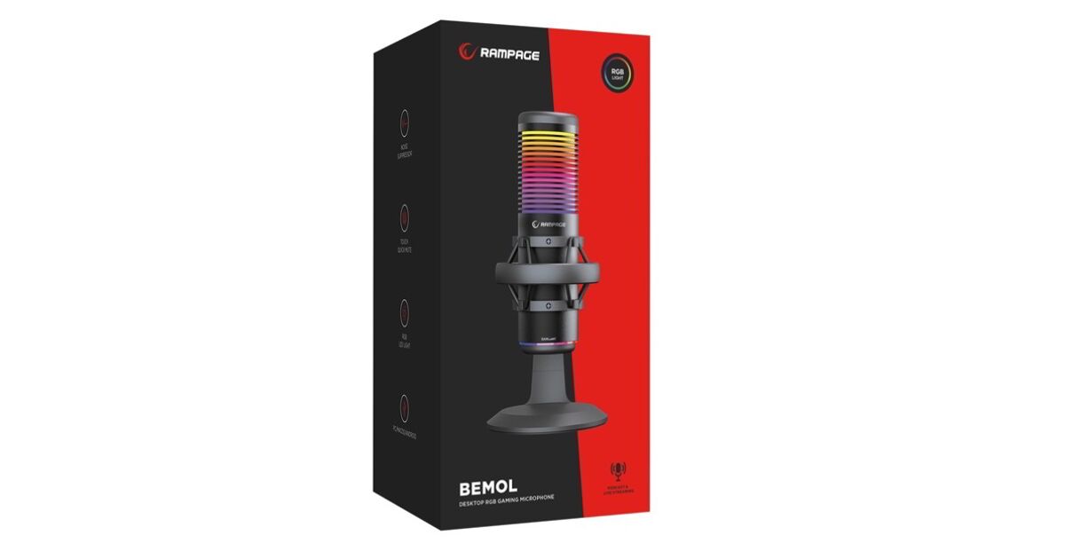 Микрофон Rampage - BEMOL (USB, PC/MAC/Android, шумоподтискане, стойка, черен, 2 м кабел, RGB) отзиви