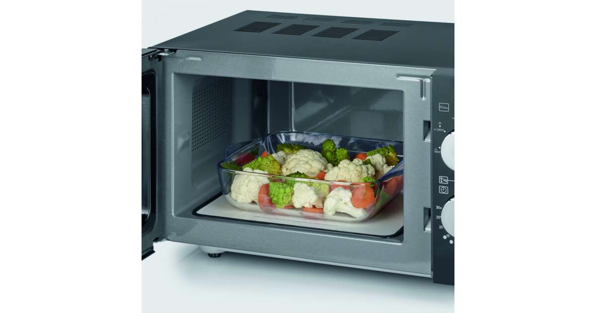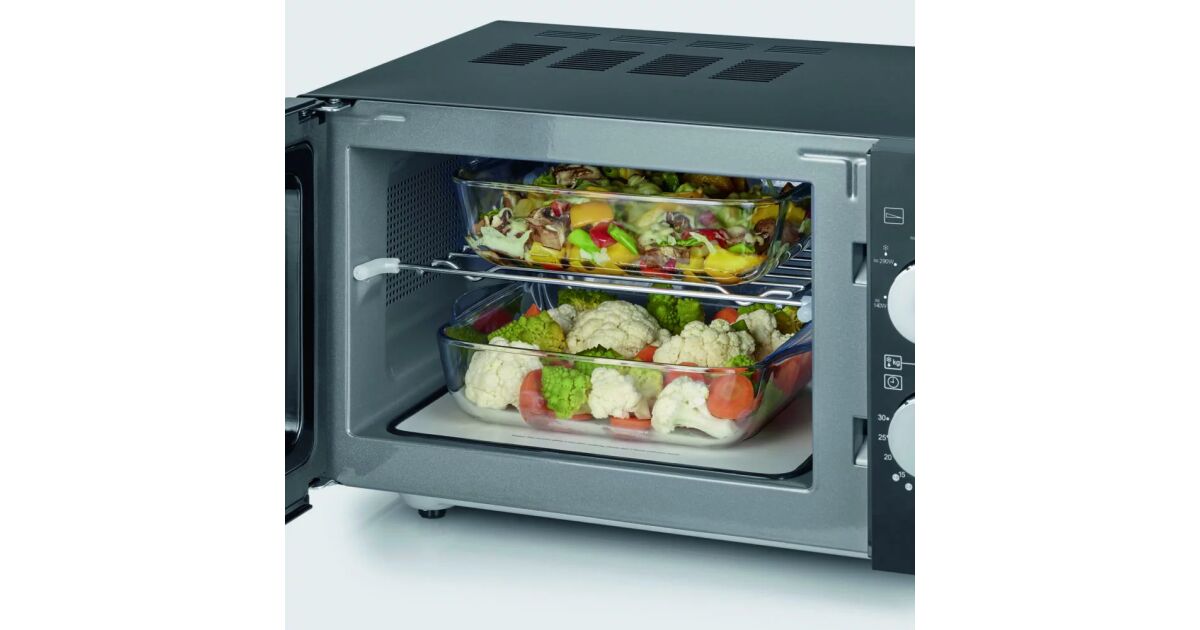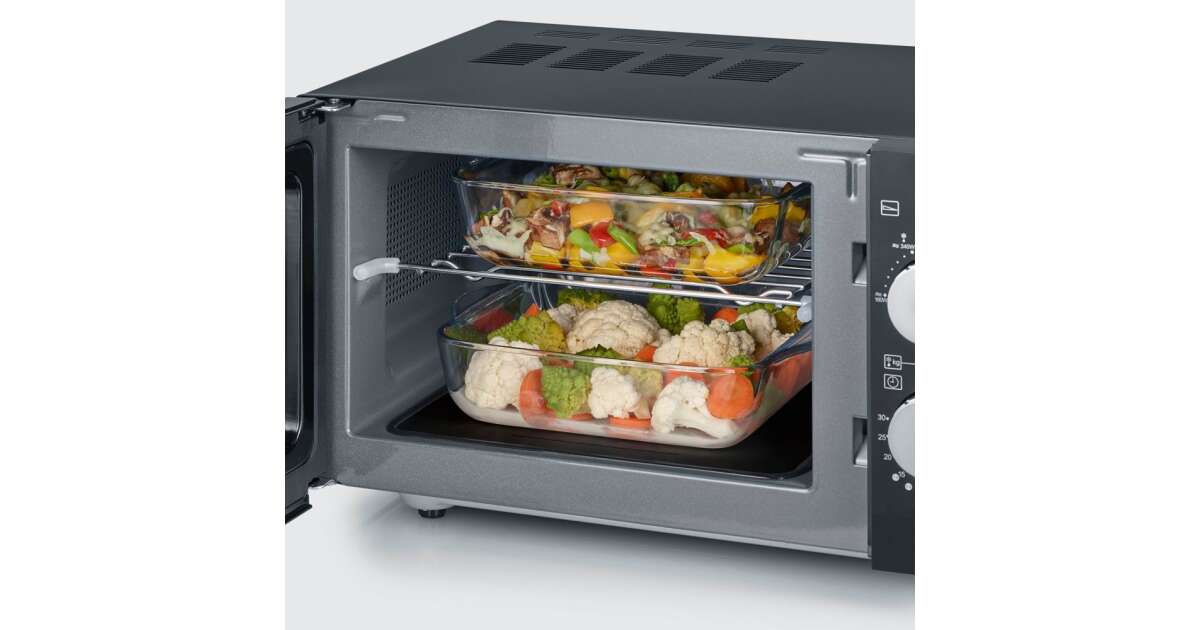 -Микровълнова фурна Severin 2в1, капацитет 20 литра, керамична основа без въртяща се поставка, готвене на две нива, 9 степени на мощност, функция...