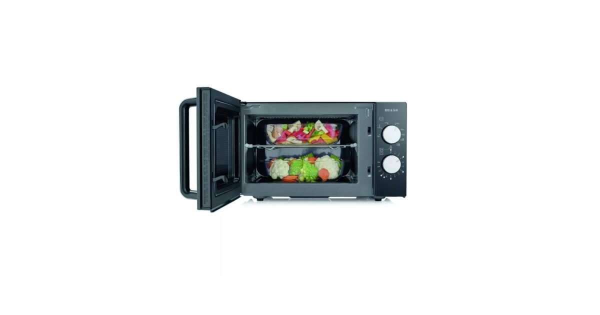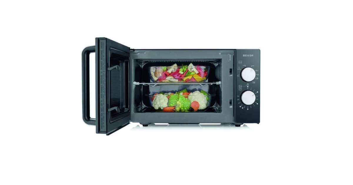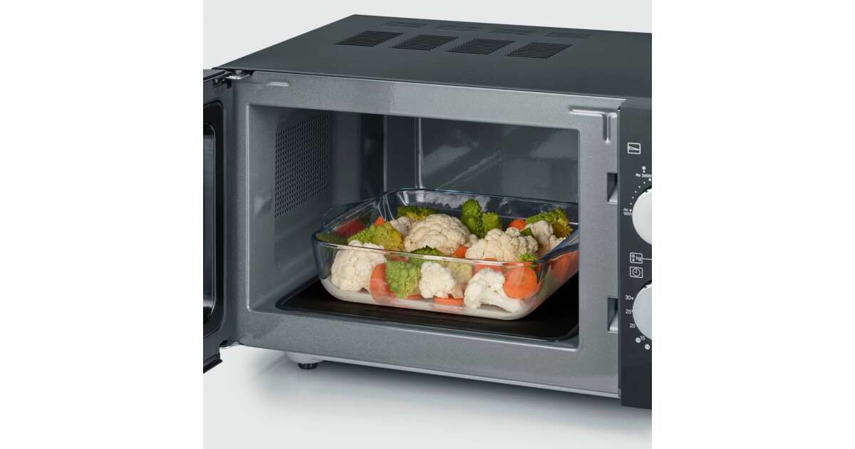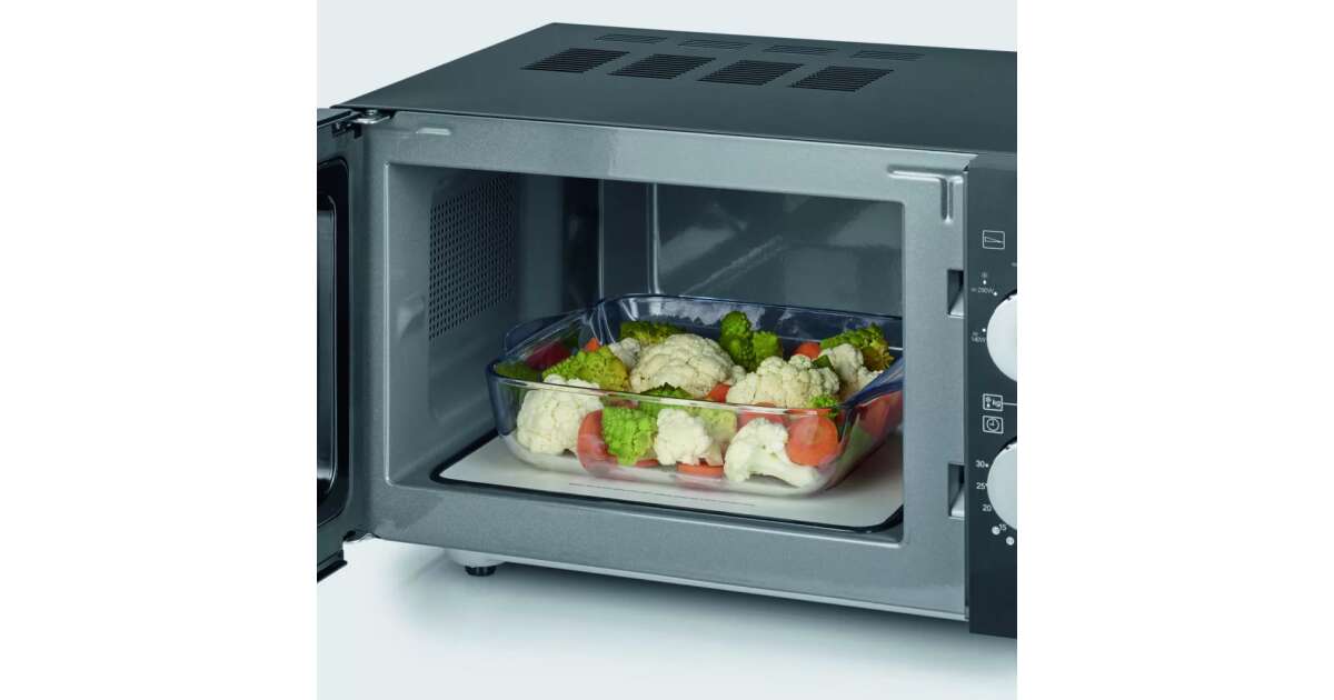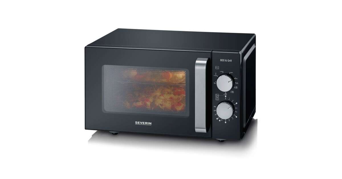 Микровълнова фурна Severin 2в1, капацитет 20 литра, керамична основа без въртяща се поставка, готвене на две нива, 9 степени на мощност, функция...