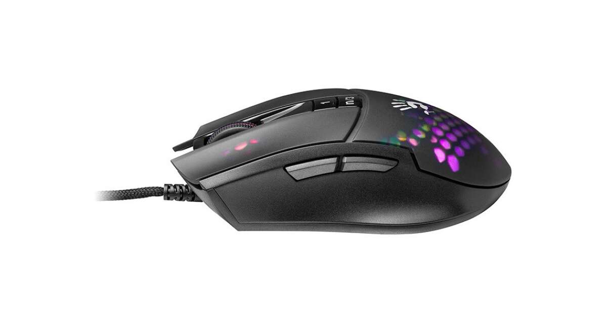 Тази лека, но здрава геймърска мишка е перфектният избор за бързи игри. Със своите 78 грама тегло и прозрачен дизайн тип пчелна пита, тя осигурява удобен захват и стилен външен вид. RGB подсветката има 5 различни ефекта, които могат да бъдат персонализирани чрез софтуера Bloody. ✨