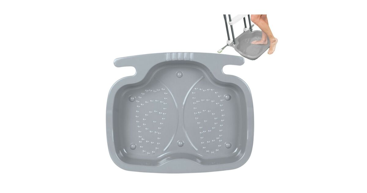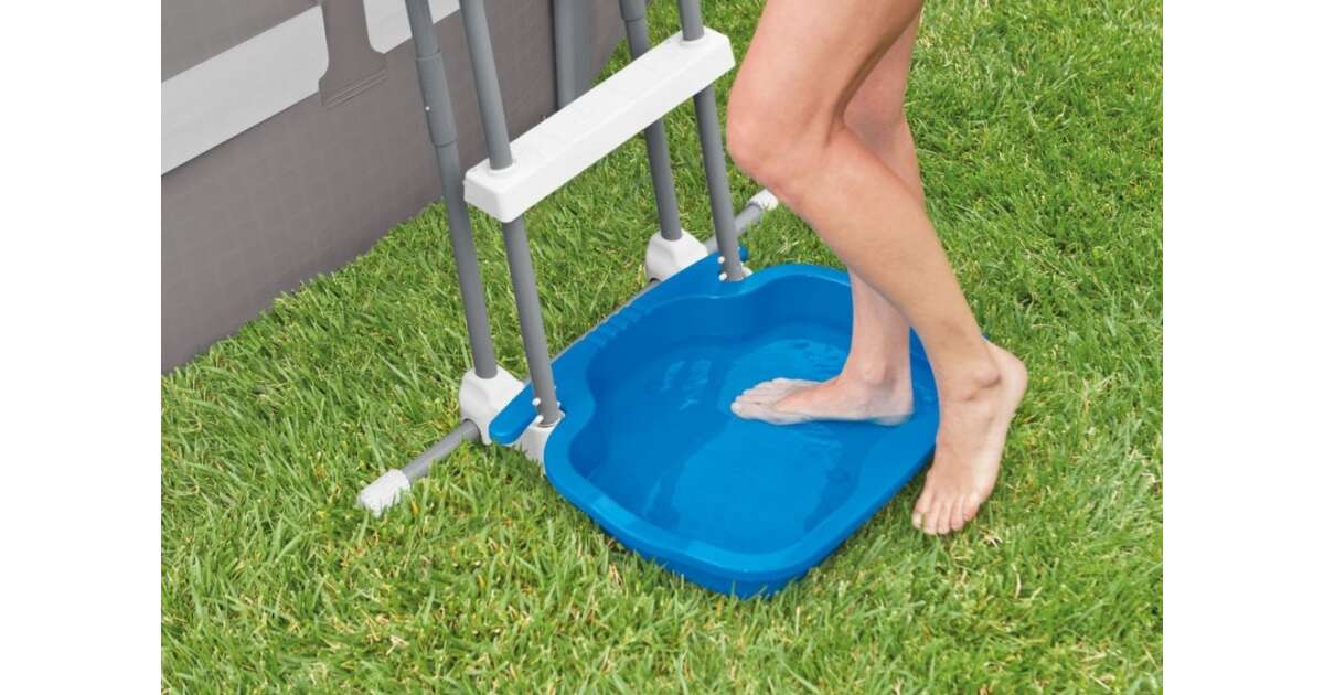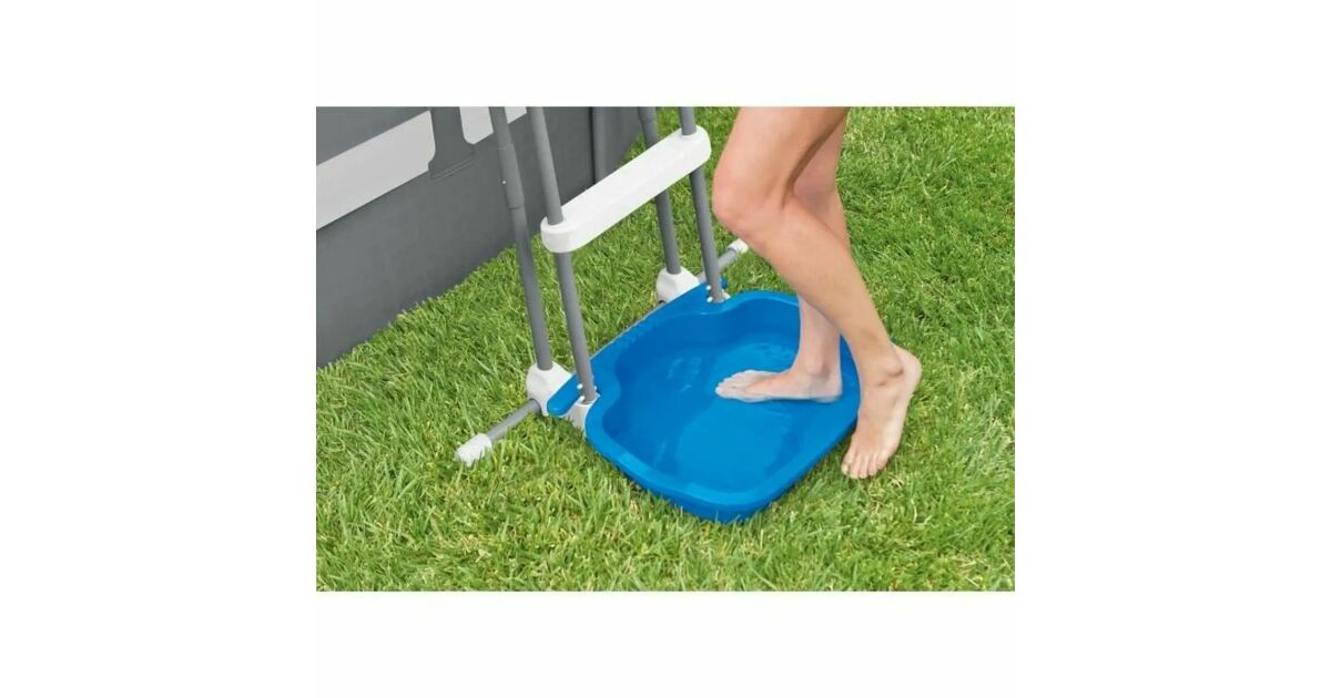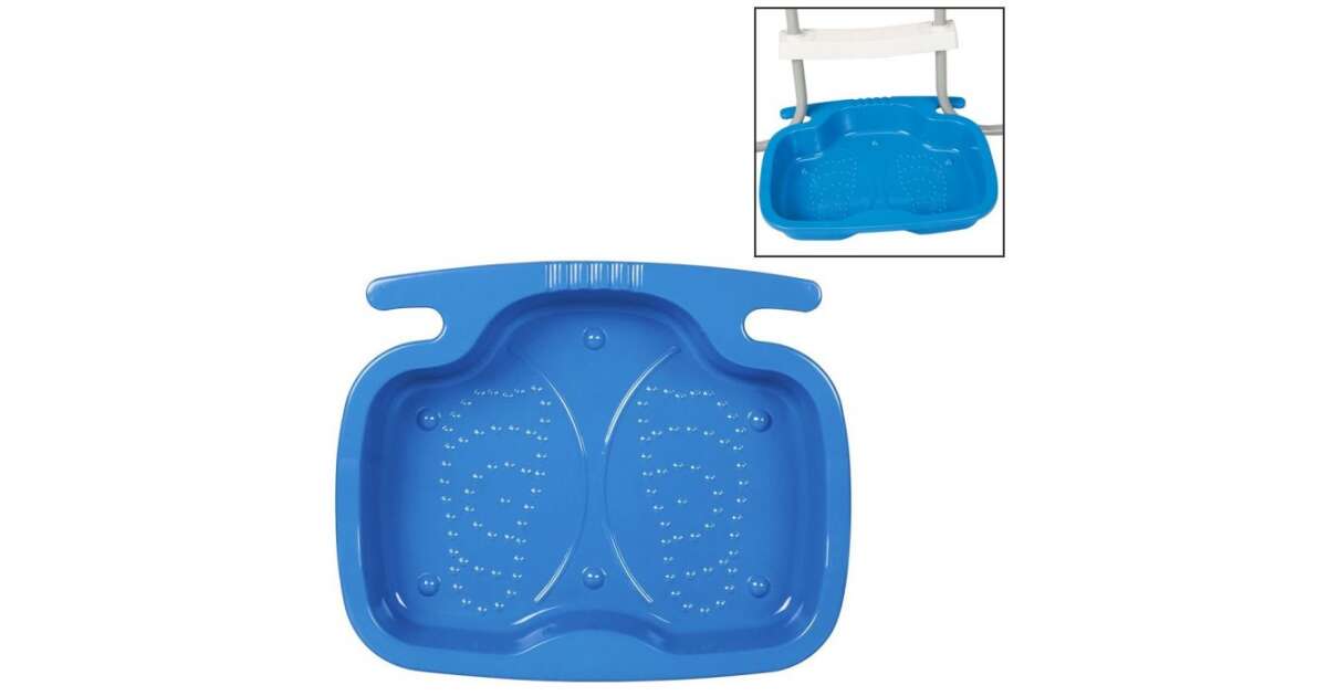 Сбогувайте се с мръсотията и тревата в басейна с тази практична тава за крака Intex! Тази лека и удобна пластмасова тава помага на плувците да си измият краката, преди да влязат в басейна, намалявайки замърсяването на водата. Продуктът се монтира лесно на всяка стълба Intex, и е с противоплъзгащо дъно за безопасност.