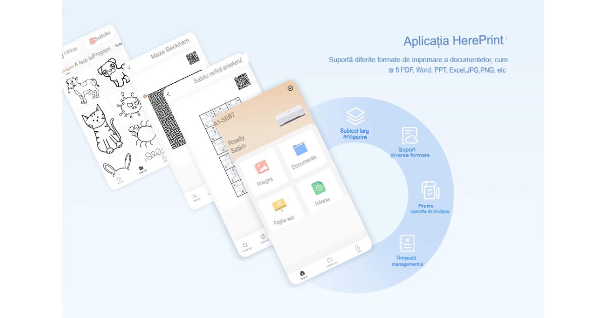 - Приложение HerePrint: Настройка на полетата на страницата, сканиране на изображения, подобряване на почерка.