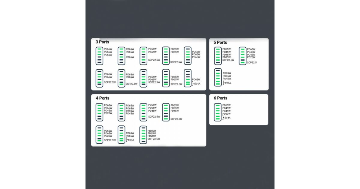 С мрежовото бързо зарядно UGREEN CD271 можете да зареждате до 6 устройства едновременно, така че вече не е нужно да чакате да се освободи контакт! Благодарение на GaN технологията, зарядното е не само ефективно, но и компактно.