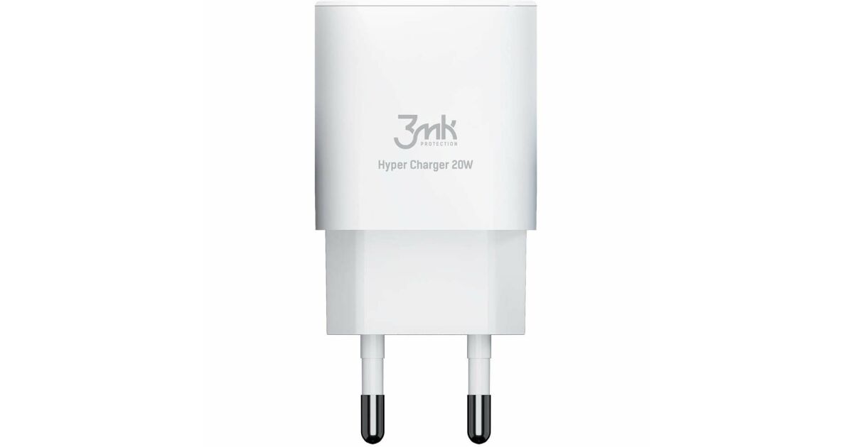 Мрежово зарядно устройство 3MK, HyperCharger, бързо зареждане, 20 W, 1 X USB - 1 X USB Type-C, бяло (5903108447003)