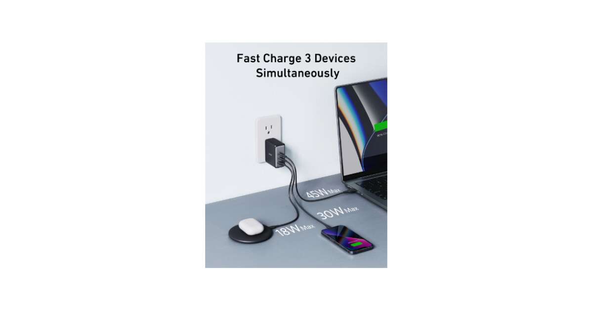 | Три порта | 45W Max + 30W Max + 18W Max |