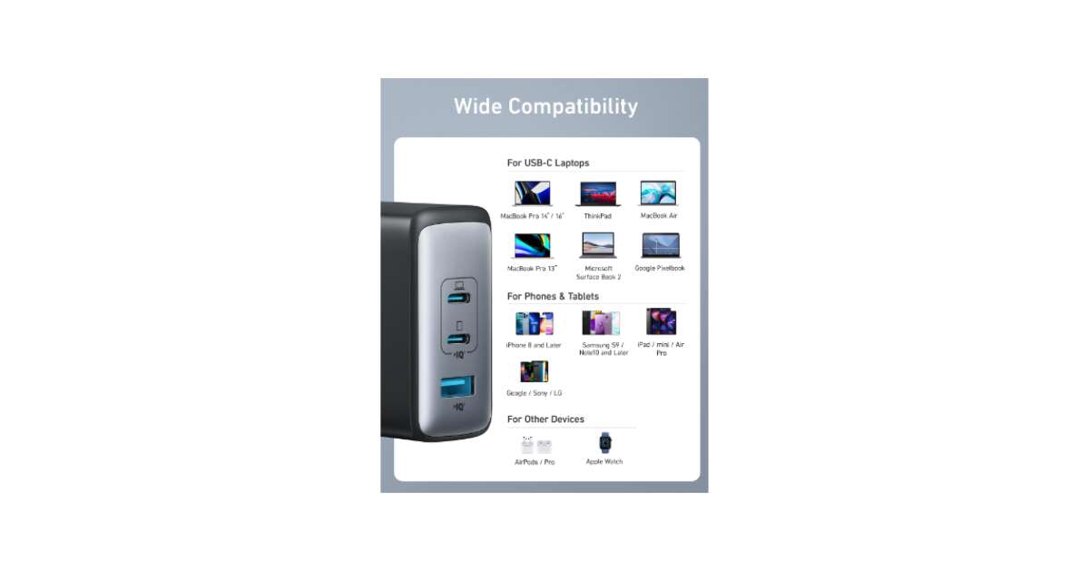 - 100W мощност: Можеш бързо да зареждаш дори лаптопи.