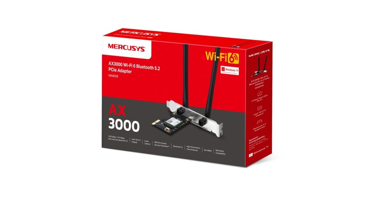 - AX3000 Wi-Fi 6 Bluetooth 5.2 PCIe адаптер (MA80XE)