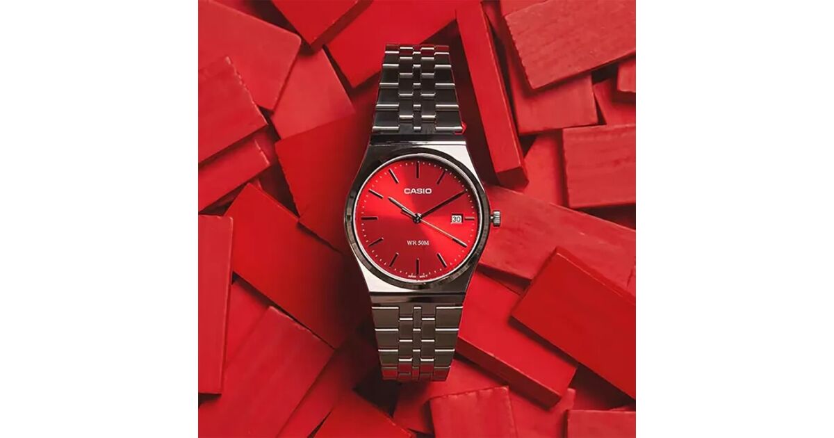 - Червен циферблат: Привличащ вниманието и стилен.