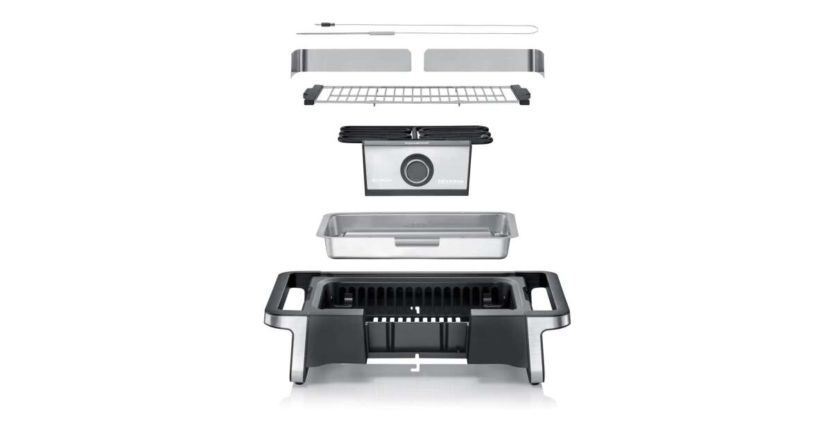 Насладете се на радостта от барбекюто, където и да сте, с тази компактна и стилна електрическа настолна скара Severin Senoa! С мощност от 3000 W, тя загрява бързо, дори до 500°C, благодарение на функцията BOOST. Идеална е за балкон, градина или дори кухня.