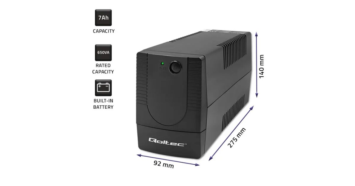 Qoltec Monolith UPS - Линейно интерактивен - 650VA/360W: Защита при прекъсване на електрозахранването ⚡