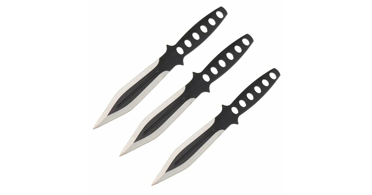 Този комплект включва два различни типа ножове за хвърляне, което го прави идеален избор за тези, които искат да подобрят техниката си на хвърляне или просто да добавят уникални парчета към колекцията си.