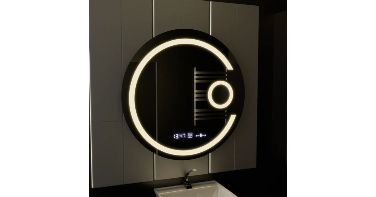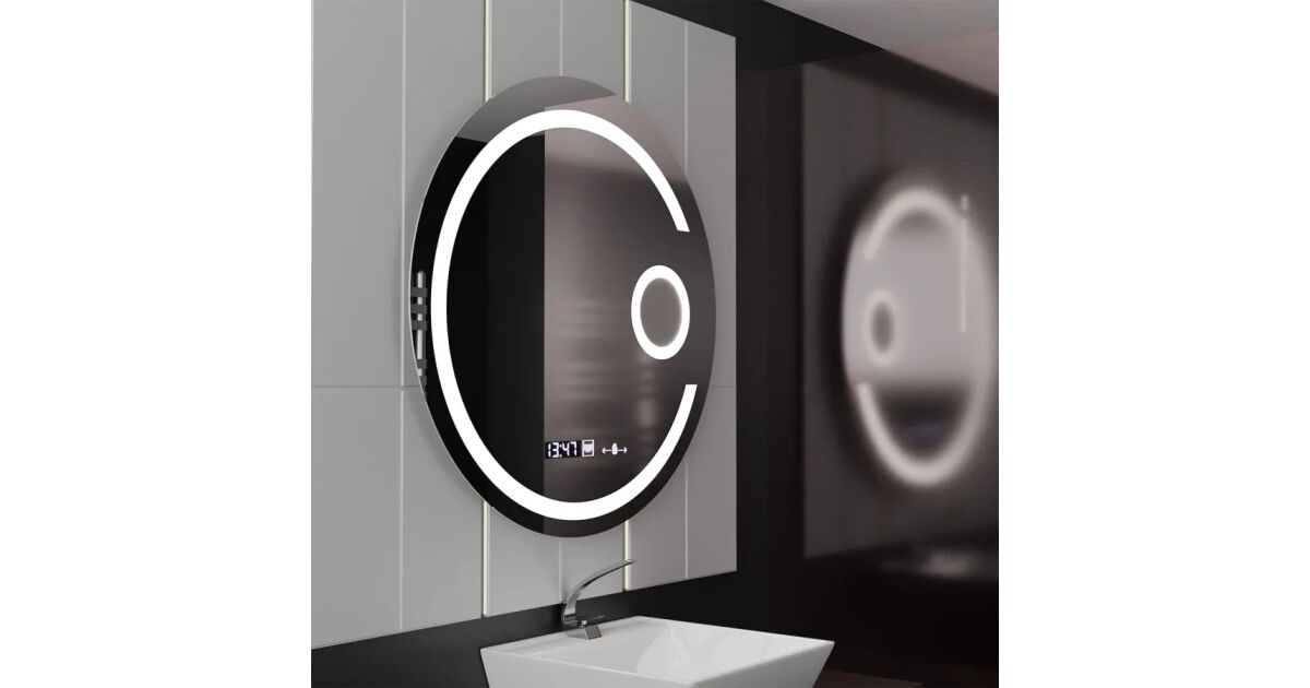 Кръгло LED огледало, 70 см, Visio MotionGlow Marcello, система за обеззамъгляване, часовник и термометър, козметична лупа, димируемо описание на...