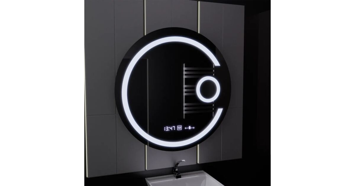 Кръгло LED огледало, 70 см, Visio MotionGlow Marcello, система за обеззамъгляване, часовник и термометър, козметична лупа, димируемо