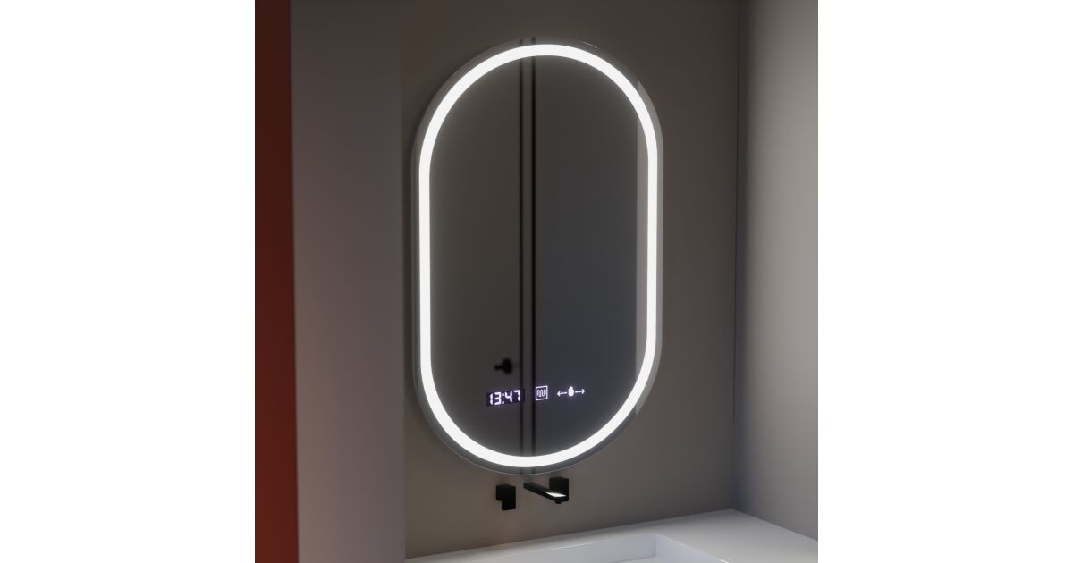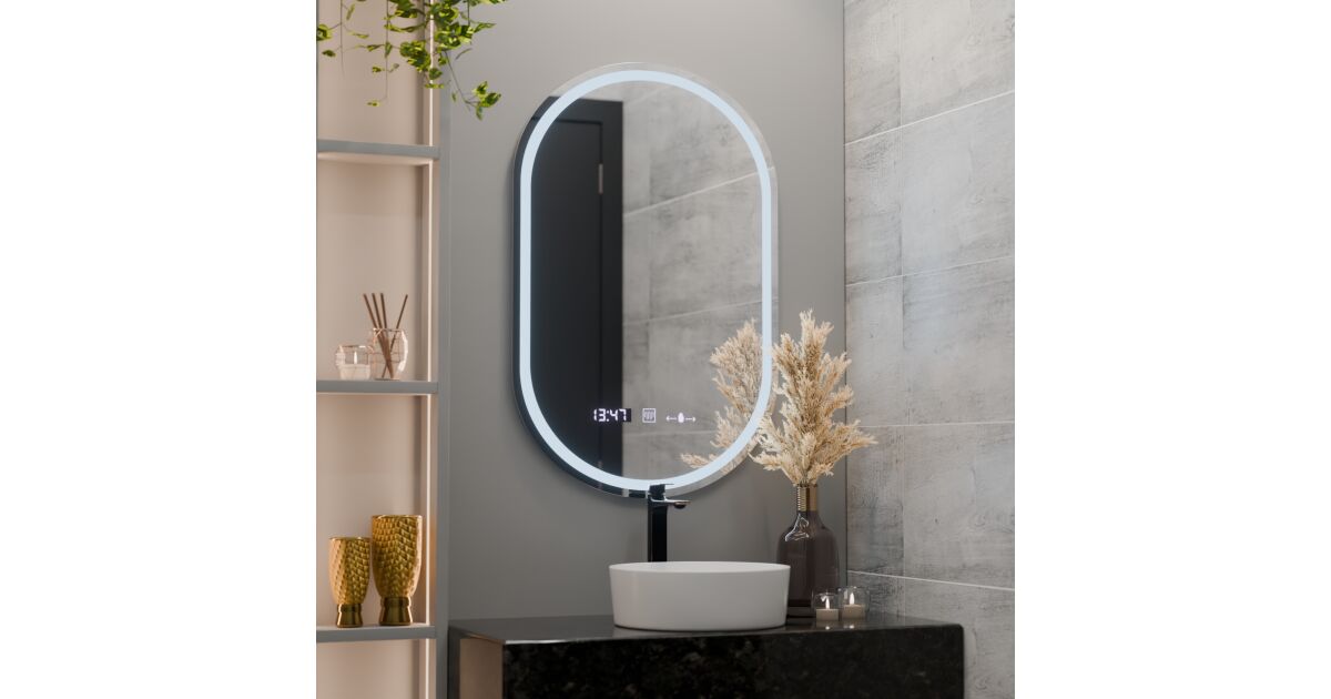 Това модерно, овално LED огледало не е просто огледало, а умно решение за вашата баня. Системата против замъгляване, часовникът, термометърът и регулирането на яркостта са тук, за да ви осигурят комфорт.