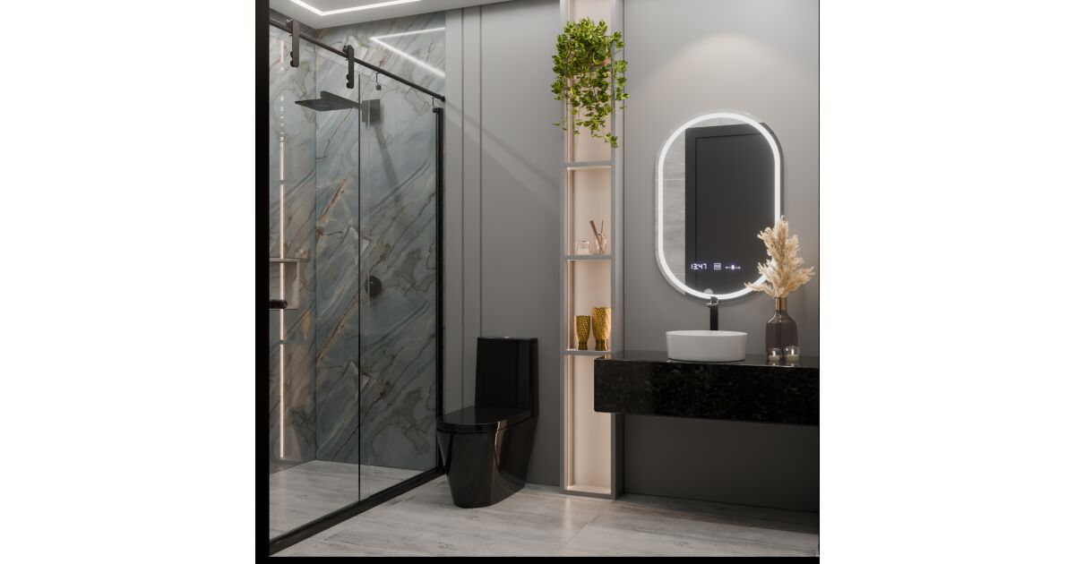 - Модерен дизайн: Овалната форма и LED осветлението придават елегантен вид на вашата баня.