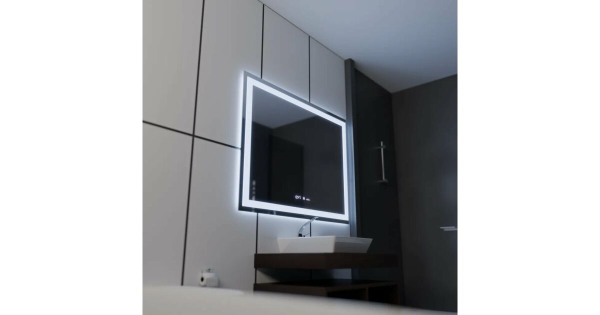 Правоъгълно LED огледало, 100x75 см, Verite MotionGlow Marcello, система против запотяване, часовник и термометър, димируемо