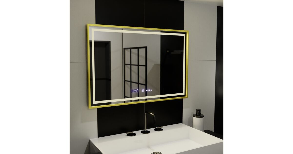 LED огледало с правоъгълна форма, 120x80cm, Verite Royale Gold MotionGlow Marcello, система против изпотяване, часовник и термометър, димируемо