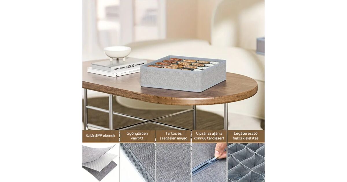 Този комплект от 4 части е идеалното решение за организирано съхранение на вашето бельо. Изработени от здрав сив плат, кутиите имат практични мрежести разделители, така че всичко е лесно за намиране и защитено от повреди. Благодарение на долния цип, те могат лесно да се сгъват и съхраняват.