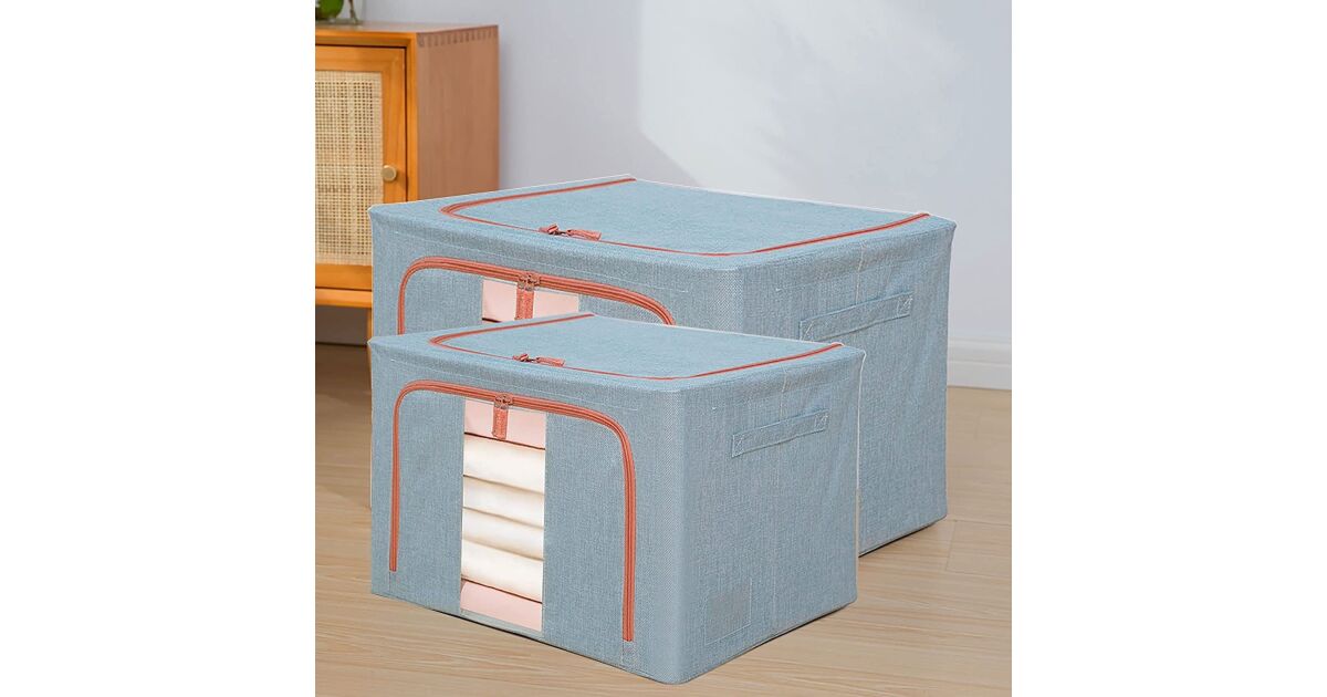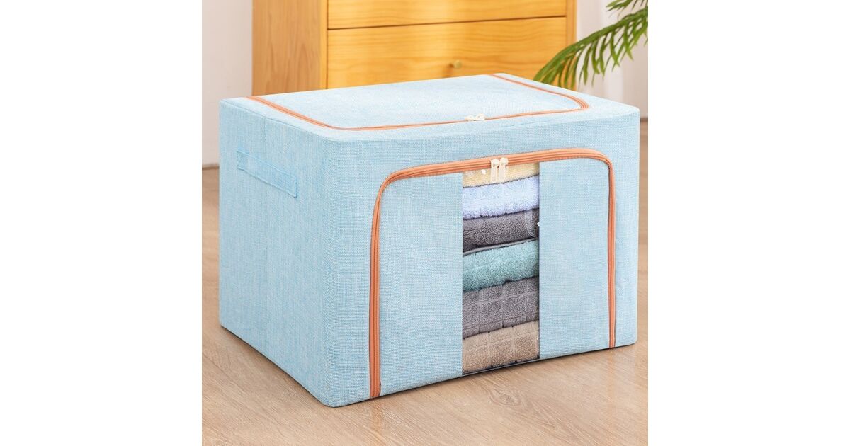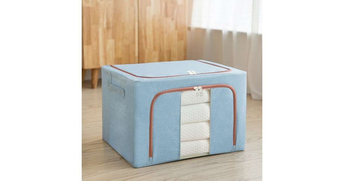 Сгъваема кутия за съхранение, KipHome, 100 л, памук и лен, 60x42x40 см, 2 прозореца, отпред и отстрани, 2 врати за достъп с двупосочен цип, метална... описание на...