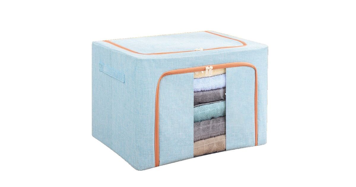 Тази сгъваема кутия за съхранение Flippy е идеалното решение да поддържате дома си подреден, а вещите ви под ръка. С щедър капацитет от 100L, тя е идеална за съхранение на дрехи, спално бельо, играчки или други предмети. Материалът от памук и лен е мек, издръжлив и приятен на допир, а синият цвят добавя нотка свежест във всяка стая.