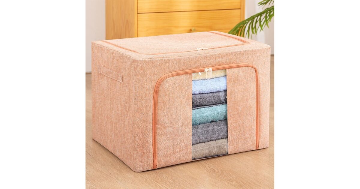 Сгъваема кутия за съхранение, KipHome, 66 л, памук и лен, 33x40x50 см, 2 прозореца, отпред и отстрани, 2 врати за достъп с двупосочен цип, метална... описание на...