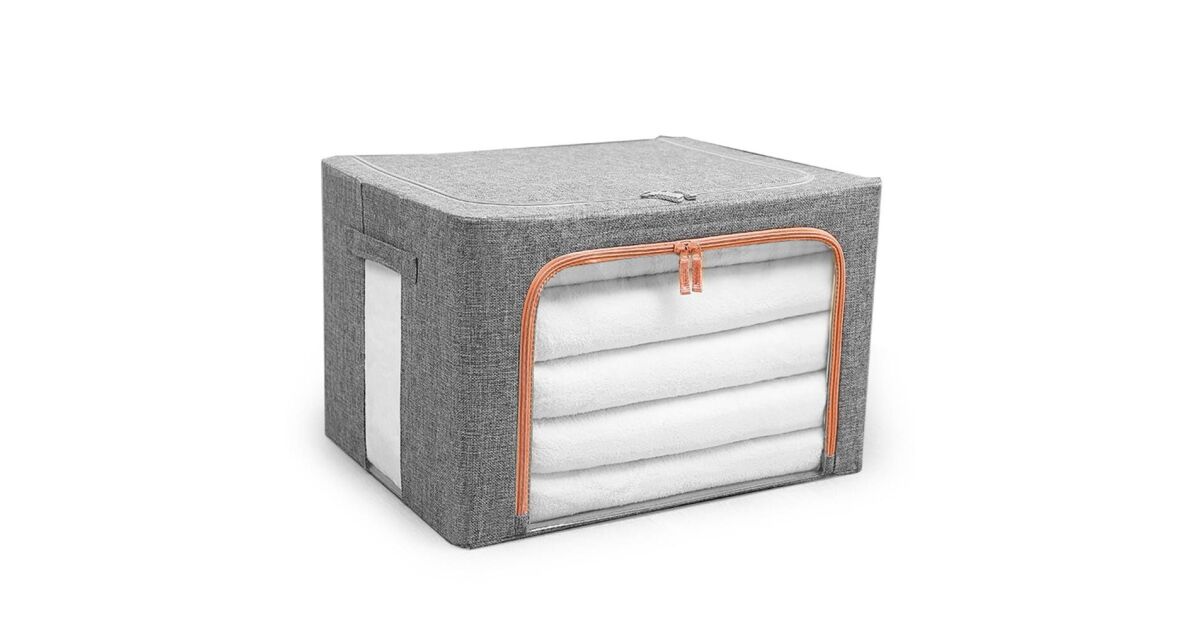 Писна ли ти от безпорядъка в гардероба? Този сив органайзер за дрехи с вместимост 66 литра е идеалното решение за съхранение, което е едновременно практично и спестява място! В него удобно се побира всичко, от което се нуждаеш, но може да се сгъне, за да заема минимално място, когато не се използва.