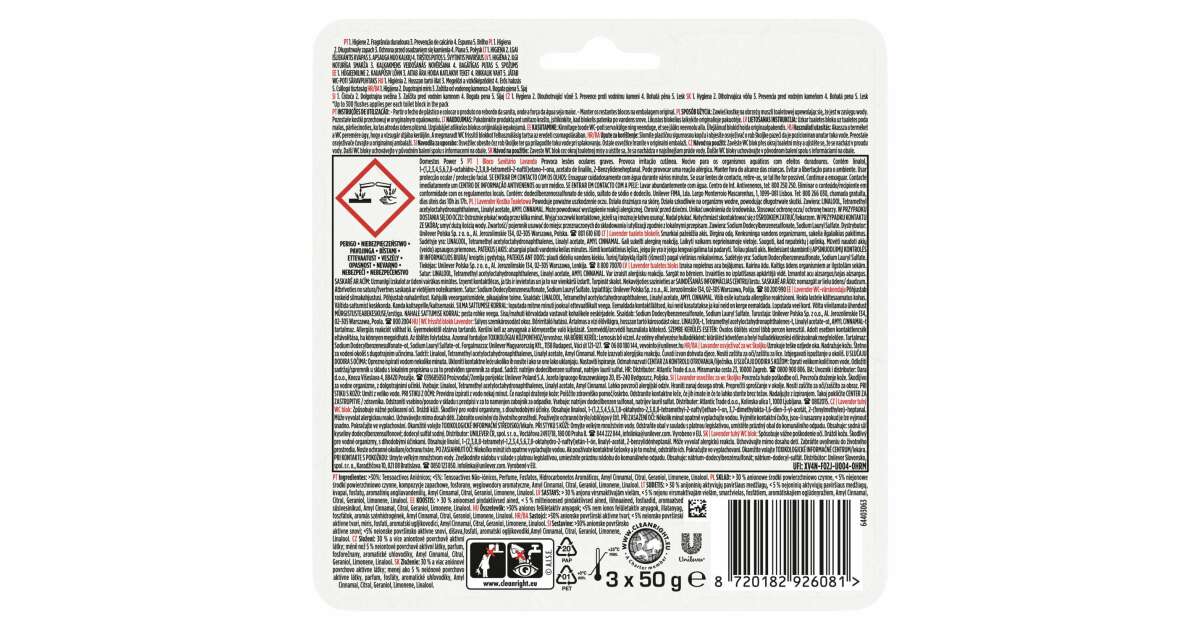 Този Domestos Power5 WC блок ефективно предотвратява образуването на варовик и натрупването на мръсотия в тоалетната, като образува обилна пяна след всяко измиване. Приятният аромат на лавандула осигурява дълготрайна свежест във вашата баня.