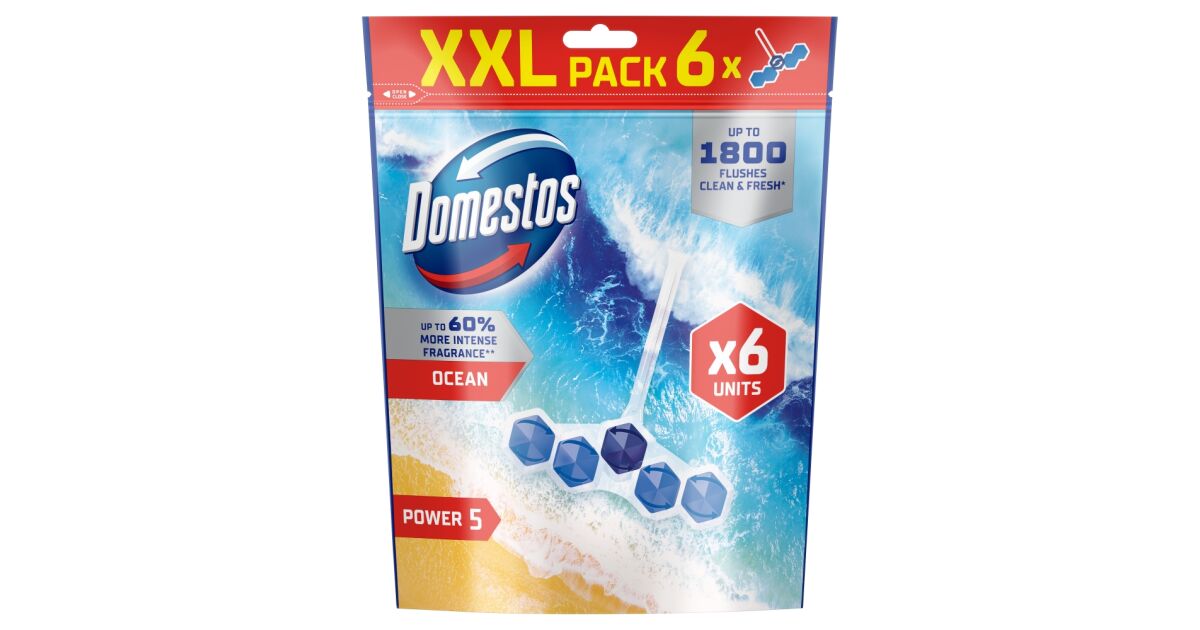 Освежаващо блокче за тоалетна Domestos Power5 Ocean (12x50g) + подарък гъба Vileda