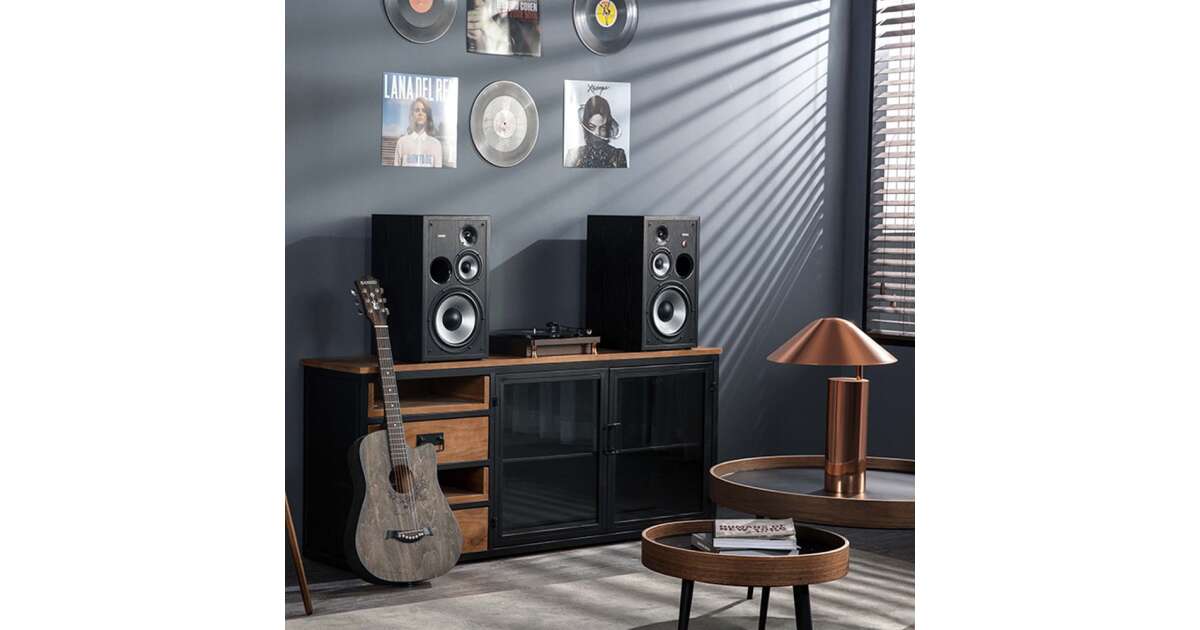 - Елегантен дизайн: Бляскав MDF корпус, който осигурява стилен външен вид и отлични акустични свойства.