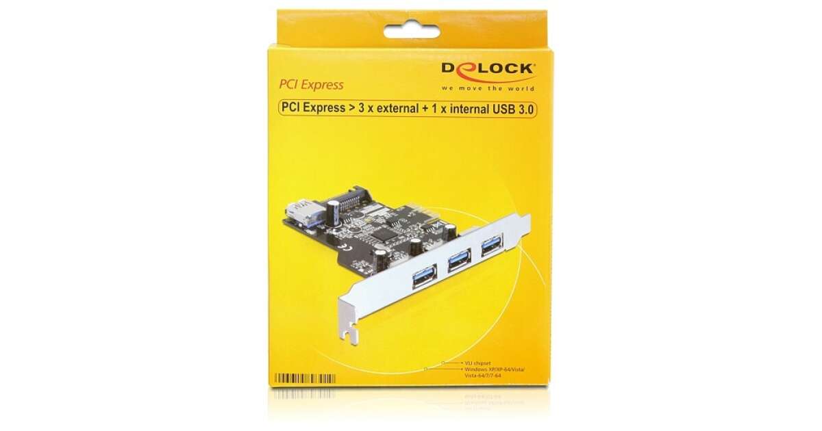 Delock PCI Express USB 3.0 разширителна карта: 3 външни + 1 вътрешен USB порт ➕