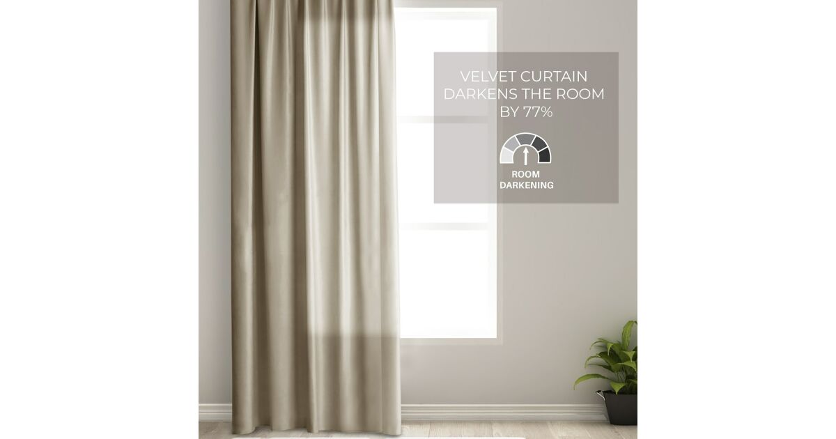 Тази красива бежова кадифена завеса е идеалният избор, ако искате да добавите малко лукс и уют към дома си. В допълнение към затъмняващата си функция, тя осигурява и стилен външен вид.