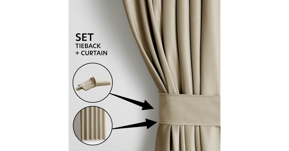 Затъмняваща завеса VELVET цвят бежов стил класическа панделка материал кадифе 140x270 AmeliaHome