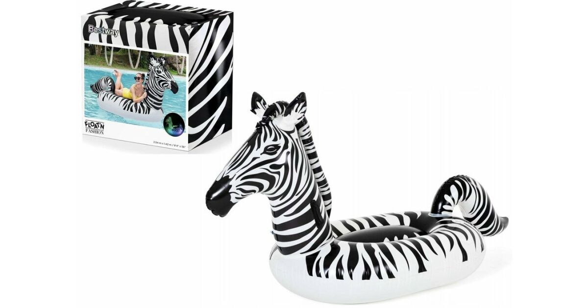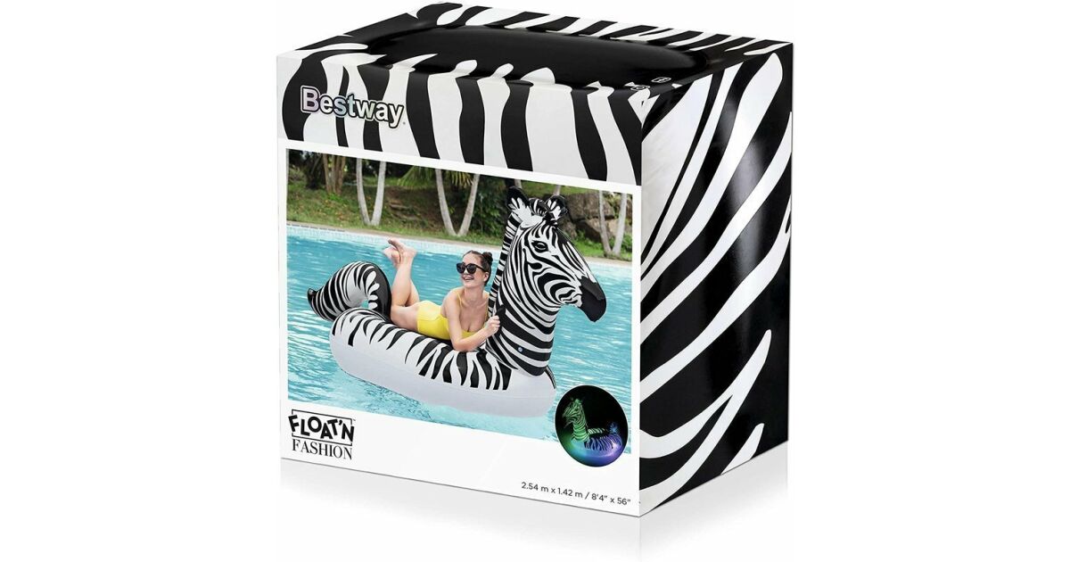 Този забавен надуваем дюшек във формата на зебра е перфектният избор за летни забавления в басейна! Той е в ярки цветове и благодарение на вграденото LED осветление изглежда фантастично дори през нощта. Можете удобно да се излежавате върху него във водата и гарантирано ще повдигне настроението край всеки басейн.