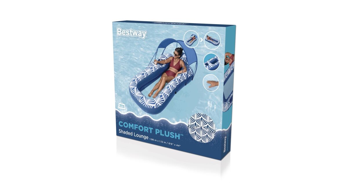 Насладете се на летните дни с надуваемия шезлонг Bestway Comfort Plush™! Този удобен и стилен шезлонг е перфектен избор за релакс на плажа или край басейна. Вграденият сенник осигурява защита от слънчевите лъчи, а меката, велурена повърхност гарантира максимален комфорт.
